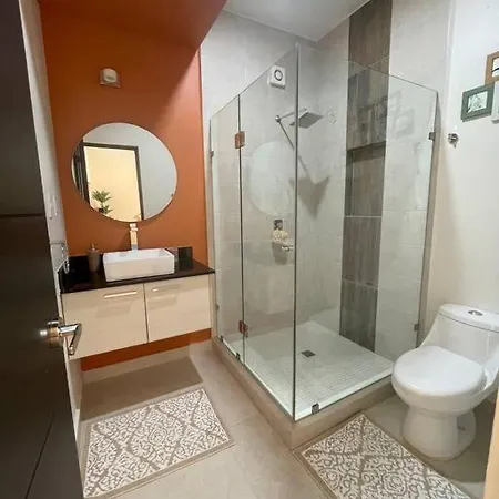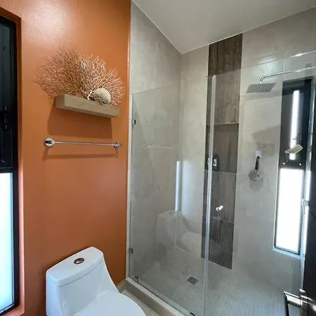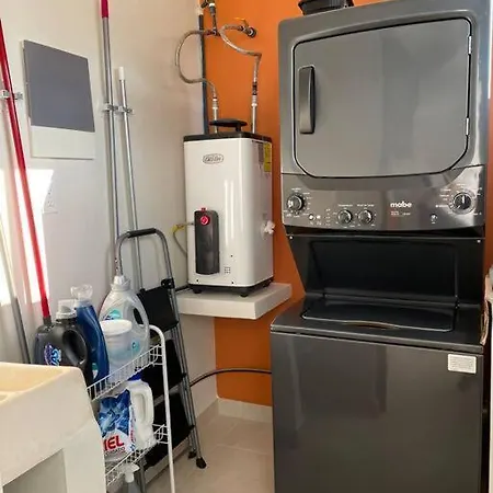 Die Badezimmer in dieser Unterkunft in Playa del Carmen sind mit einer begehbaren Dusche und einer Waschmaschine ausgestattet. Ein Haartrockner und Badelaken stehen auch zu Ihrer Verfügung.